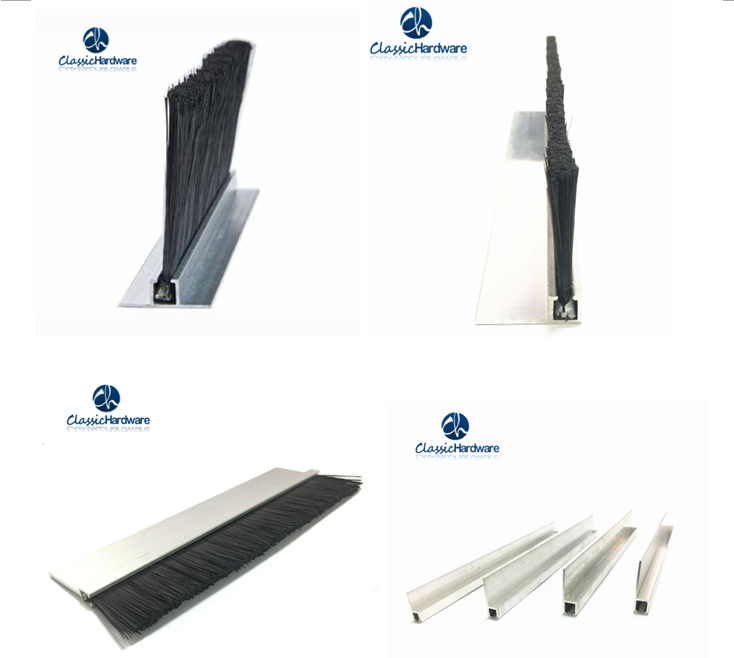 工業(yè)門、卷簾門、快速門一般使用H型(180°)或者F型(90°)鋁條配套毛刷,毛刷的高度常用規(guī)格是35mm,50mm,100mm,毛料有PP,PA。