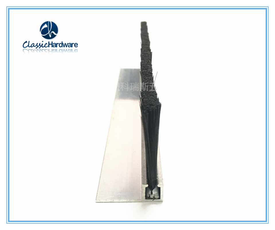 旋轉(zhuǎn)門(mén)一般使用T型(90°)鋁條,配羊毛或者馬毛毛刷,毛刷總高常規(guī)有25,35,45,55,還需要配90°拐角毛刷。